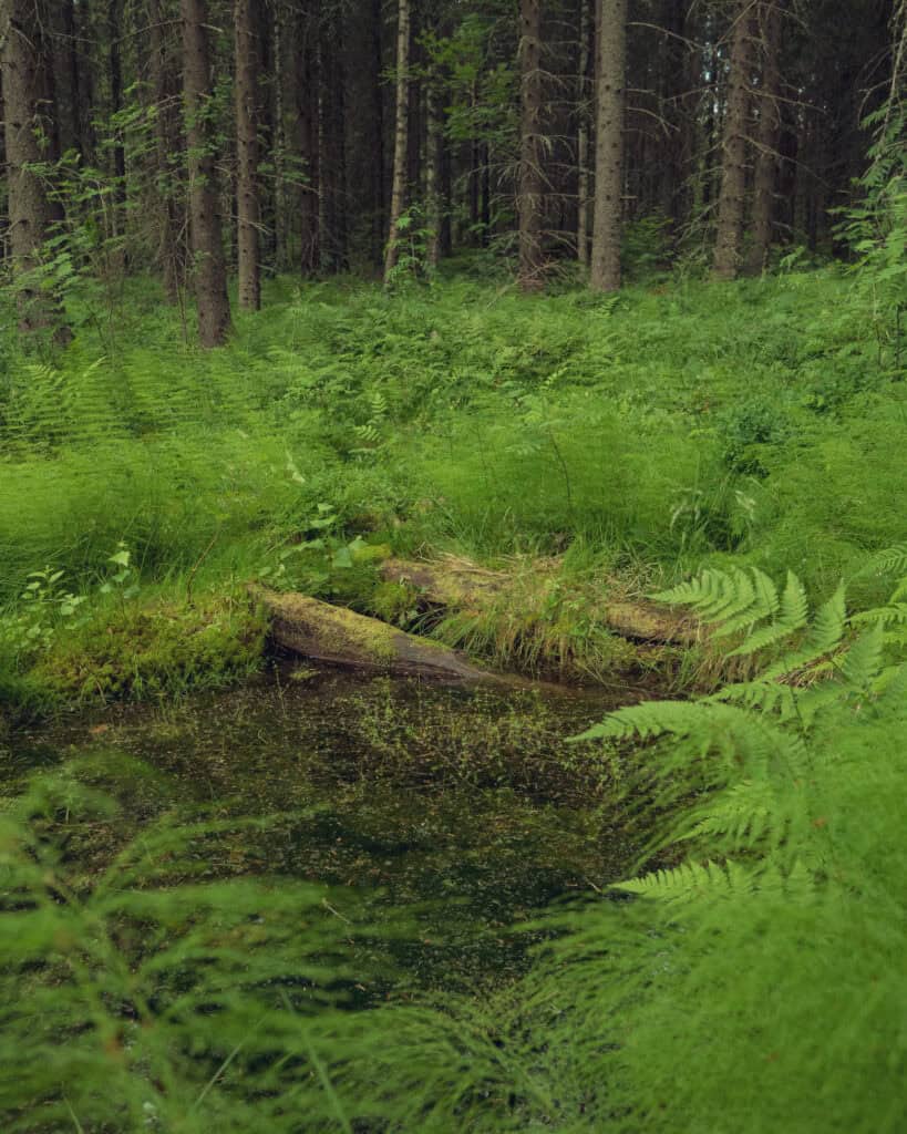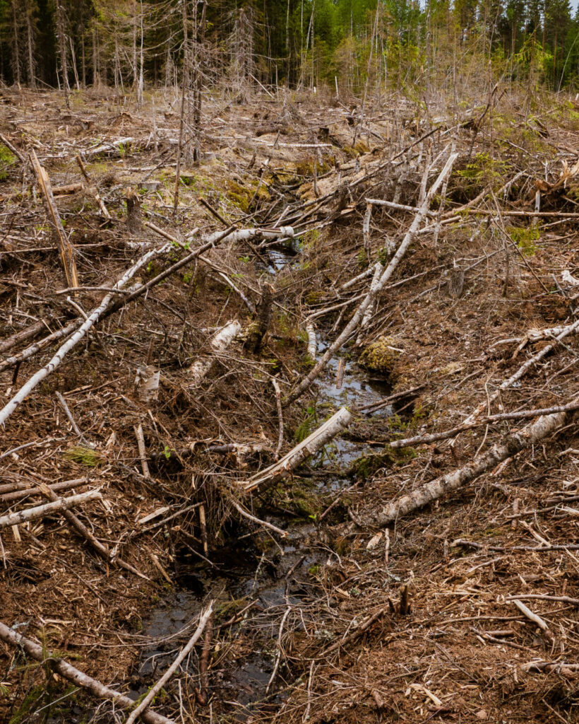 Mutta aika rientää ja kehitys kehittyy. Enää lähteissä ei säilytetä maitotonkkia tai hillopurkkeja, lähdevettä ei noudeta reellä navettaan tai taloon, eikä lähteiden vedellä pyykätä tai lioteta hamppua. Lähteillä ei tehdä juhannustaikoja tai lausuta toiveita karja- tai metsästysonnen puolesta, eikä niiltä haeta parannusta sairauksiin tai apua kumppanin löytämiseen. Nyt on Tinder, jääkaapit ja vesijohtoverkosto. Ja siinä lähteiden merkityksen hiipumisen ja modernin retkeilijän välissä tuli se kaikista olennaisin; tehostettu metsätalous, jotta Suomi saatiin toisen maailmansodan jälkeen nousuun. Lähteet unohtuivat. Ne jäivät tarmokkaan ojittajan jalkoihin, ojajyrsimen auraan ja hakkuiden alle.